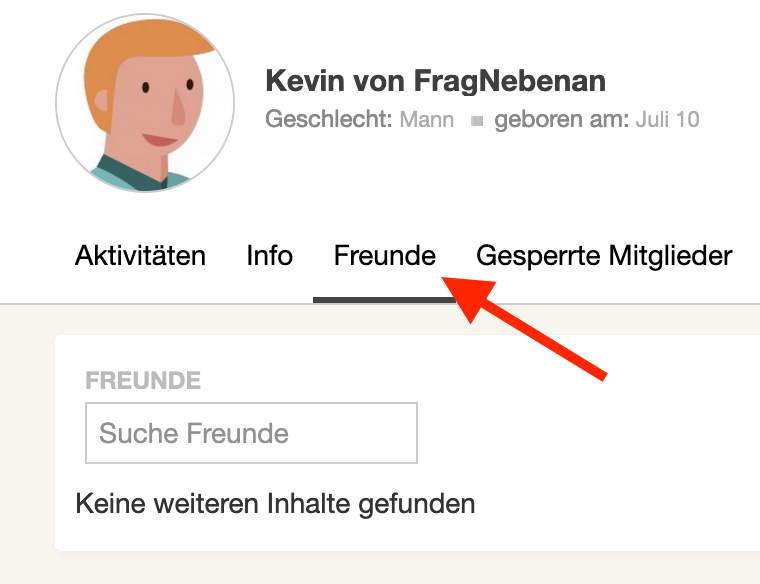 - Hier sind deine Freunde angeführt, die auch mit einer Volltext-Suche nach Namen durchsucht werden können.