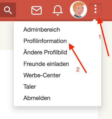 Wenn du über das Menü links oben die Profilinformation angewählt hast bekommst du die erste Seite mit den Einstellungen (siehe Bild). Über das Zusatzmenü links unten kannst du dann die weiteren Unterpunkte aufrufen wie z.B. die Benachrichtigungseinstellungen, die E-Mail-Einstellungen, das Passwort ändern, deine Talente & Interessen oder die Verwaltung deiner Adressen.