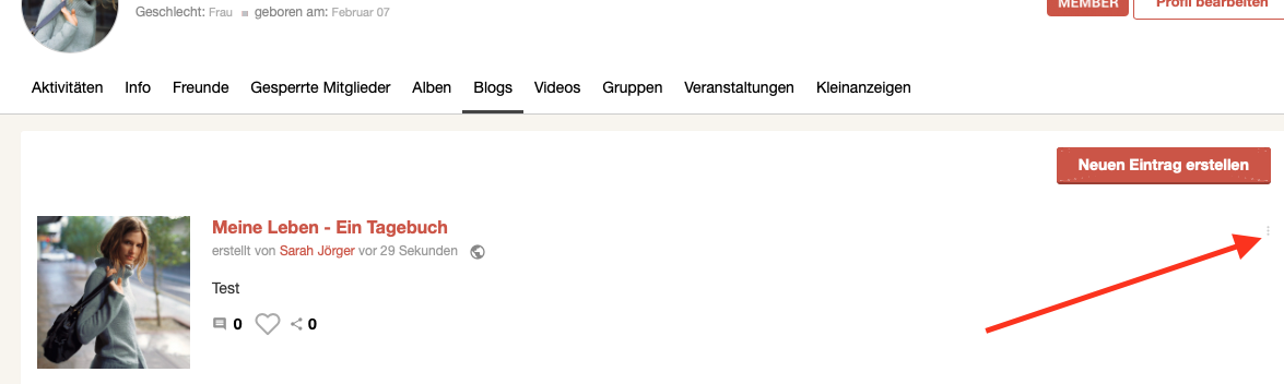 - Möchtest du einen Blog-Eintrag bearbeiten kannst du das über das 3-Punkte-Menü rechts oben (siehe Bildschirmfoto).