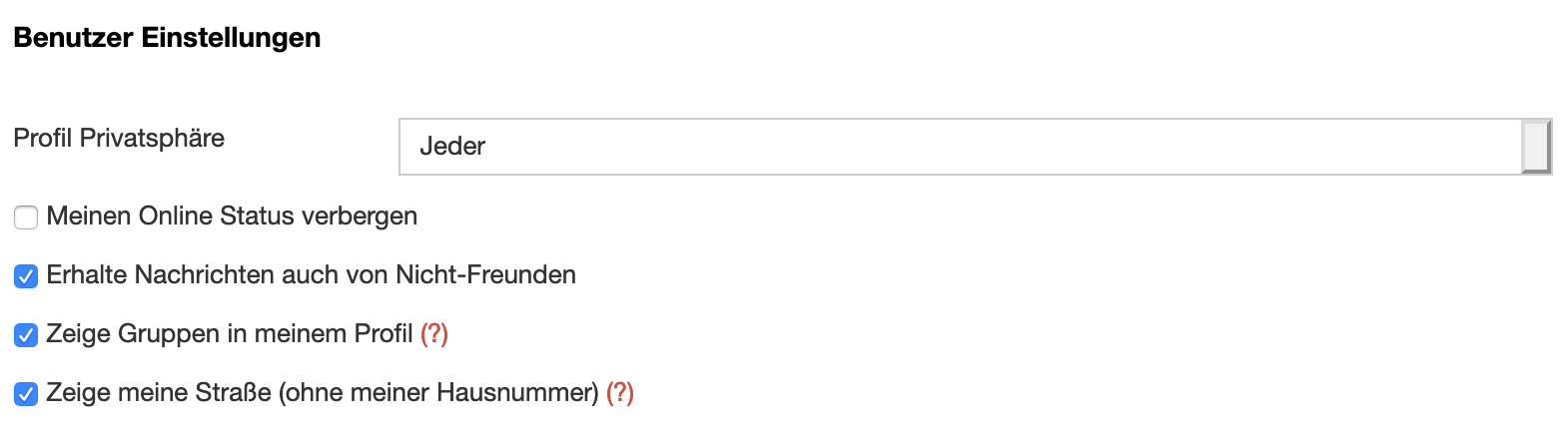 Bitte beachte, dass die Privatsphäre-Einstellungen nur für deine Eckdaten (Geschlecht, Geburtstag, Adresse), Aktivitäten und Basis Informationen gültig ist. Für alle anderen Infos auf deiner Profil-Seite können die Privatsphäre-Einstellungen für jeden einzelnen Inhalt festgelegt werden (z.B. Fotos und Fotoalben, für Blogs, Videos etc.).
