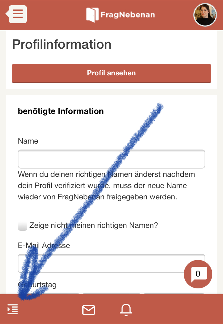 Am Mobiltelefon oder Tablet kommst du über das Zusatzmenü zu den Profil-Einstellungen.
