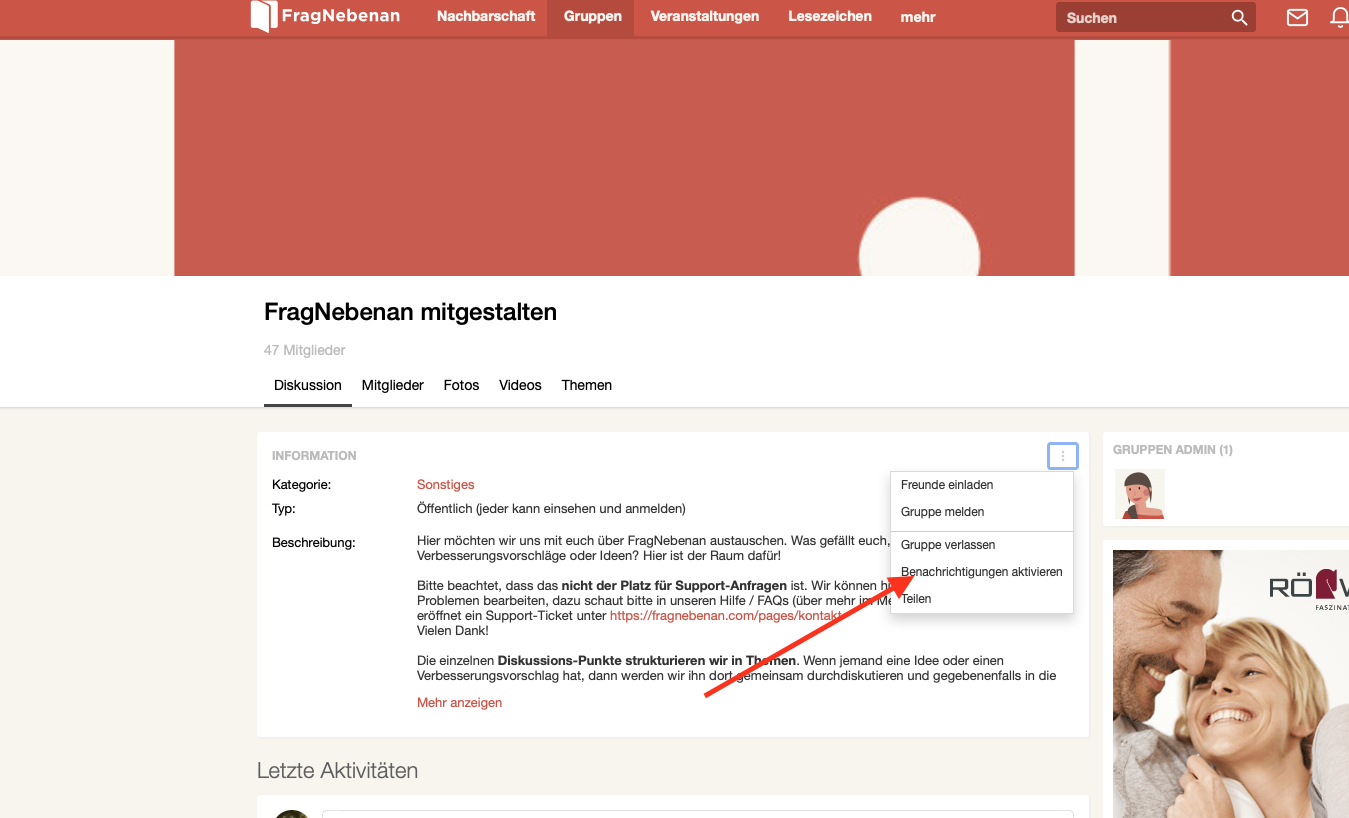Dort kannst du direkt die Benachrichtigungen aus der betreffenden Gruppe deaktivieren, oder zu einem späteren Zeitpunkt auch wieder aktivieren.